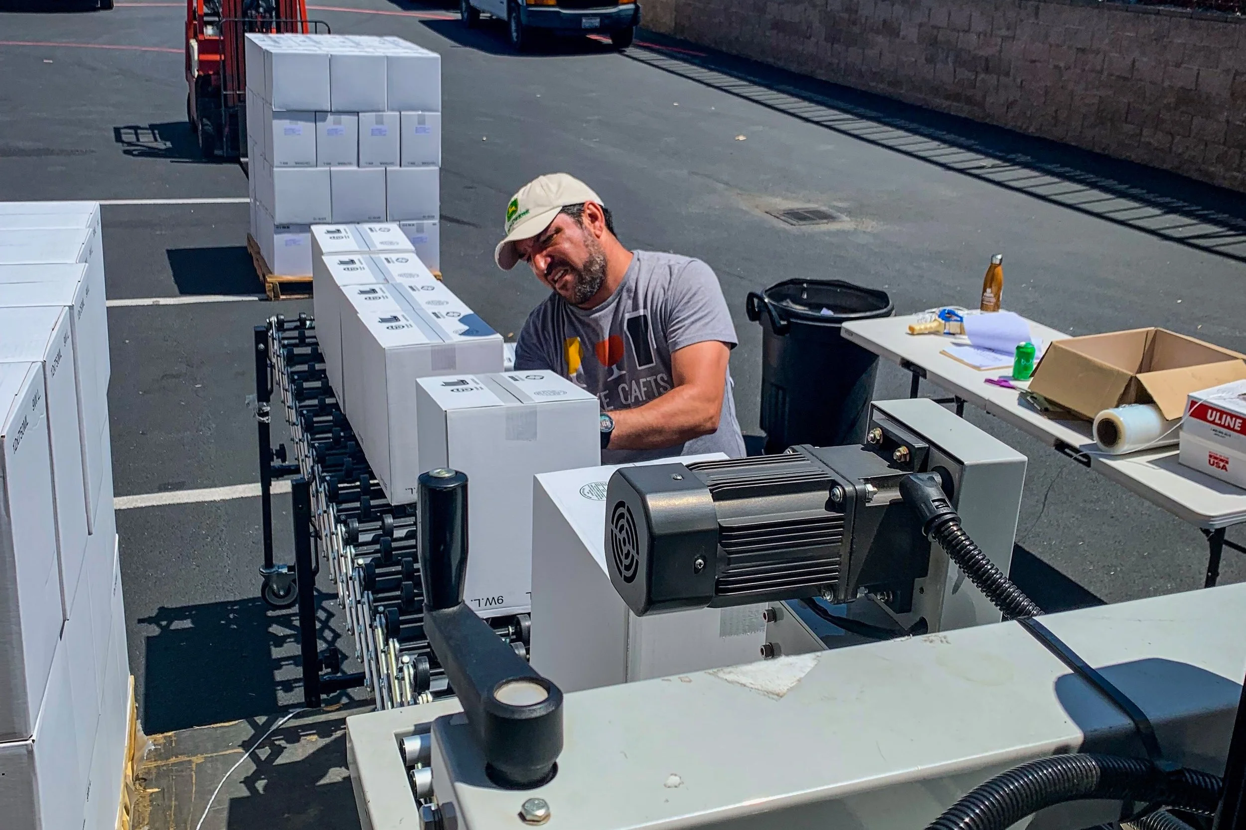 The machine is set up to do 200 boxes per hour, and the day we bottled saw 13,000 bottles get ready for shipment.
