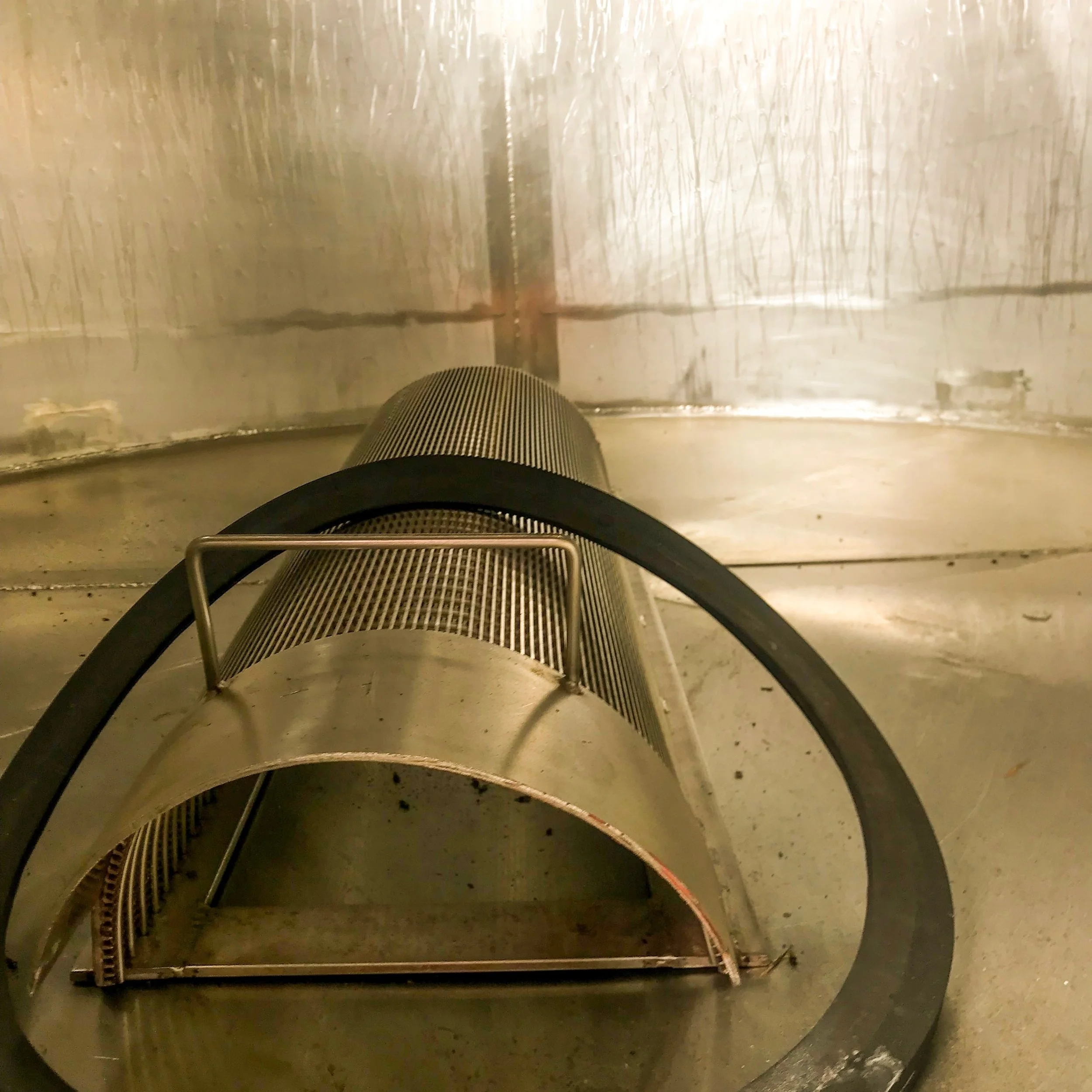 Once the picking is done for the day, you take the macro bins (which now hold more than a few tons of fruit) back to the warehouse, where they’re put through a destemmer. The fruit drops into a hopper, and the paddles connected knock the berries off the stems. The stems are spit out into a bin in the front, and the destemmed fruit that’s ready to start fermenting, drops into a bin below.